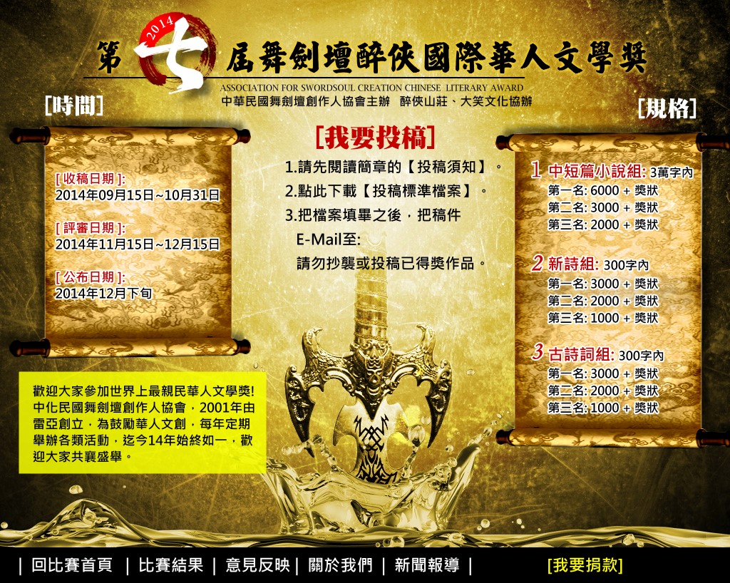 2014【第七屆舞劍壇醉俠國際華人文學獎】簡章