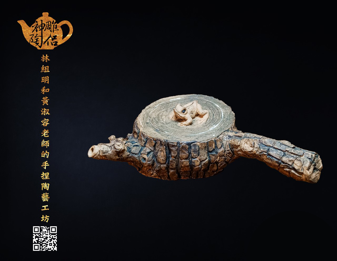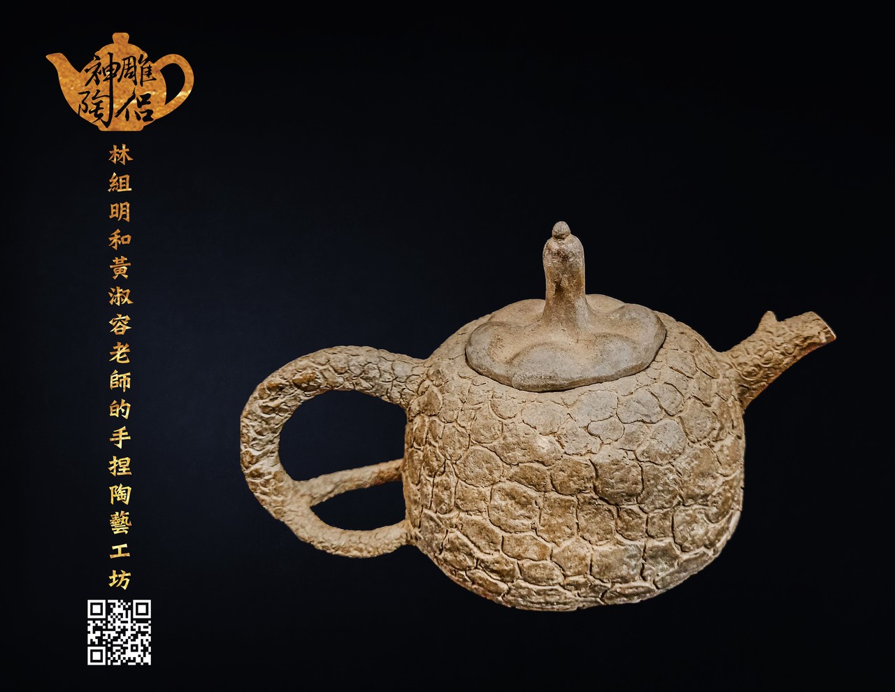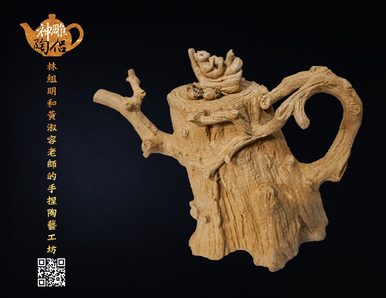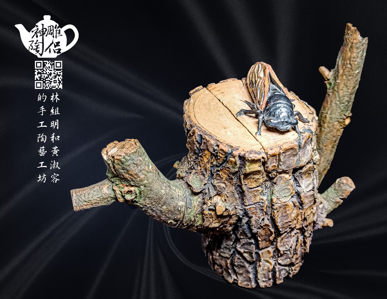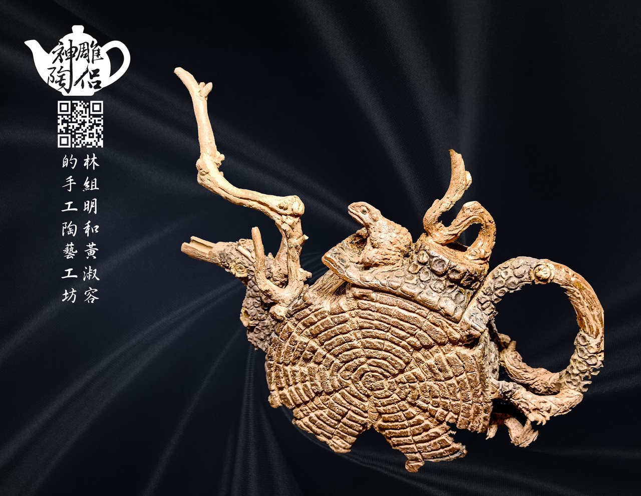 林組明老師的手捏茶壺作品,模仿自然界萬物,維妙維肖,朽木、殘竹、昆蟲鳥魚皆可入形為陶,作品造形精巧、多變化又討喜,每一件陶藝作品皆是花費多時親手製作、獨一無二,是台灣相當具有特色的陶藝作品。