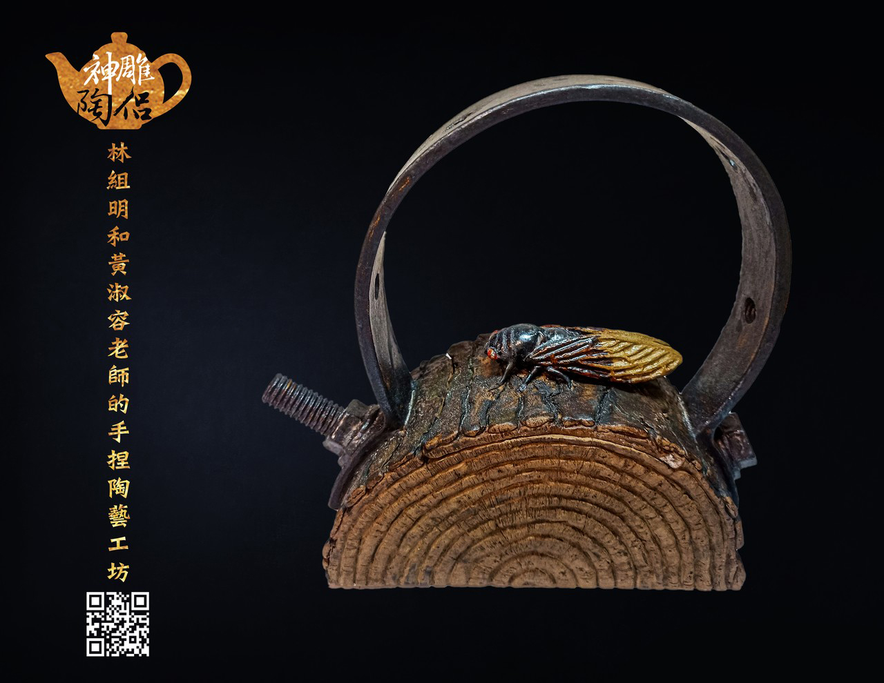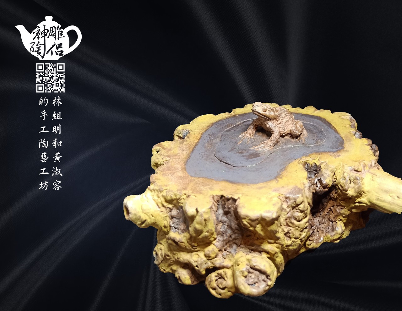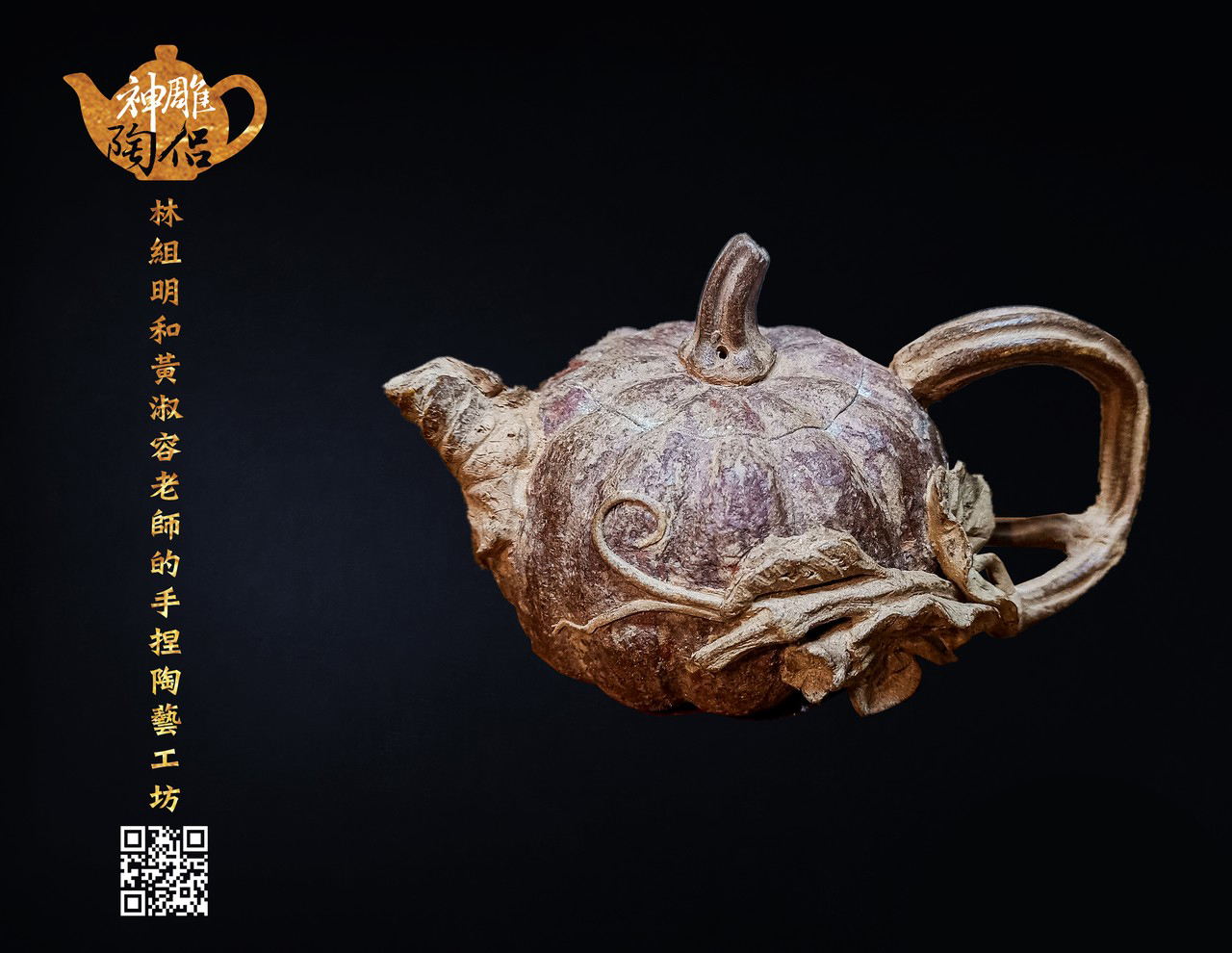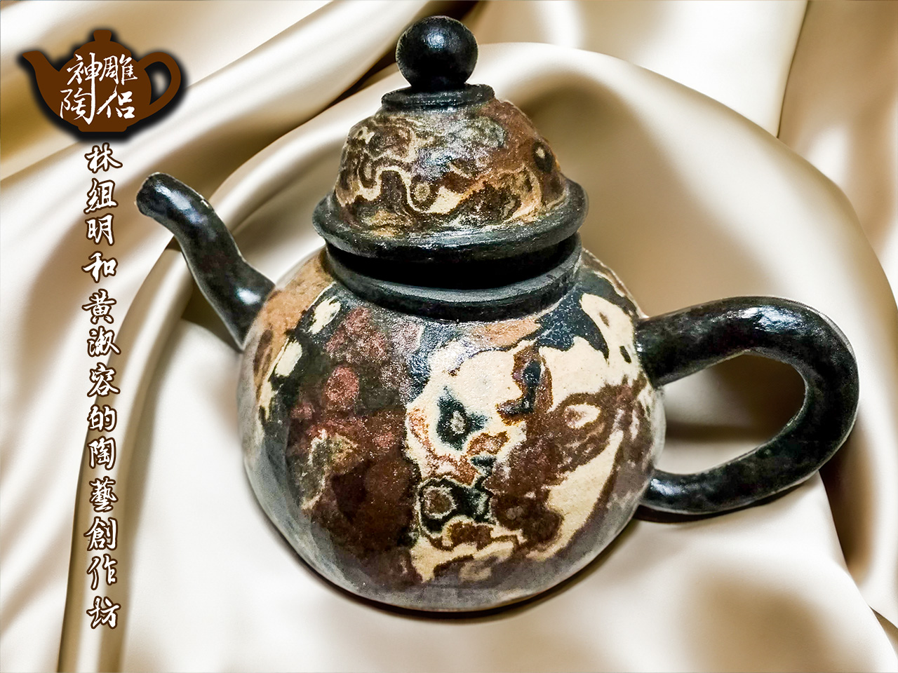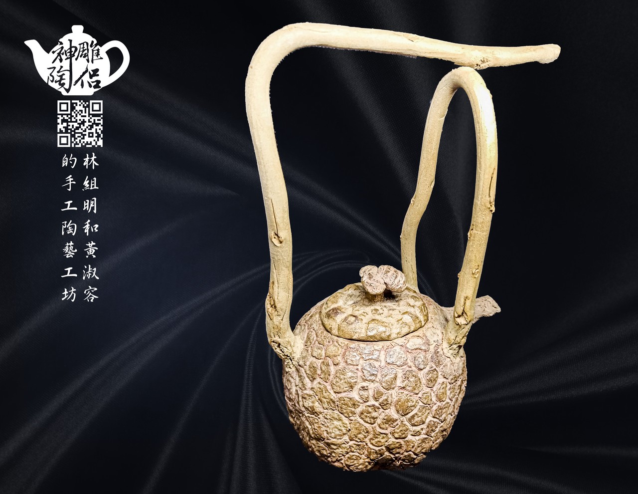林組明老師的手捏茶壺作品,模仿自然界萬物,維妙維肖,朽木、殘竹、昆蟲鳥魚皆可入形為陶,作品造形精巧、多變化又討喜,每一件陶藝作品皆是花費多時親手製作、獨一無二,是台灣相當具有特色的陶藝作品。