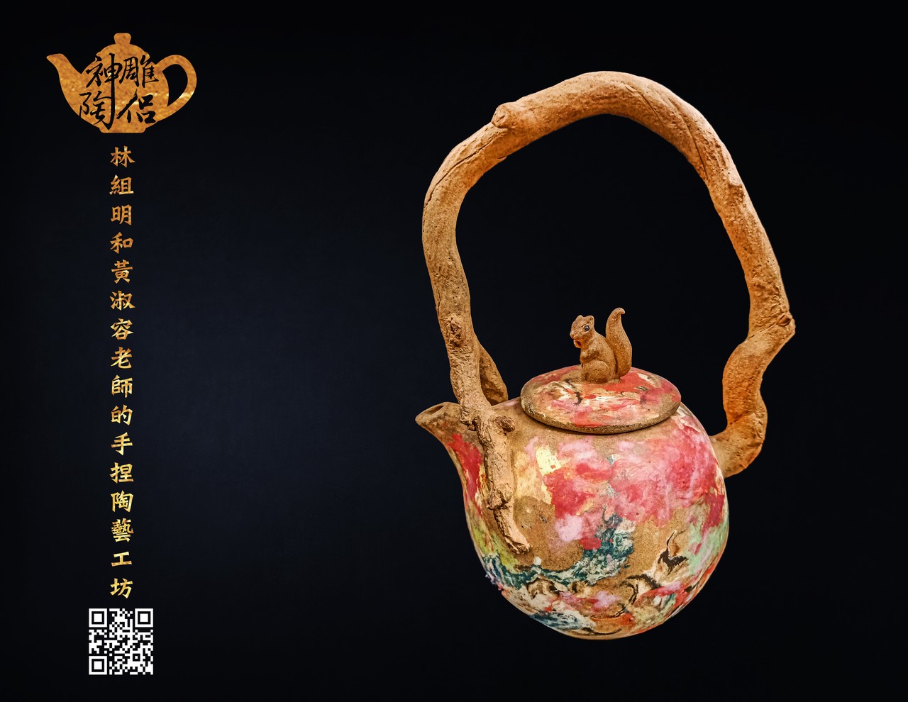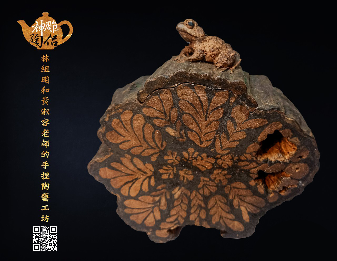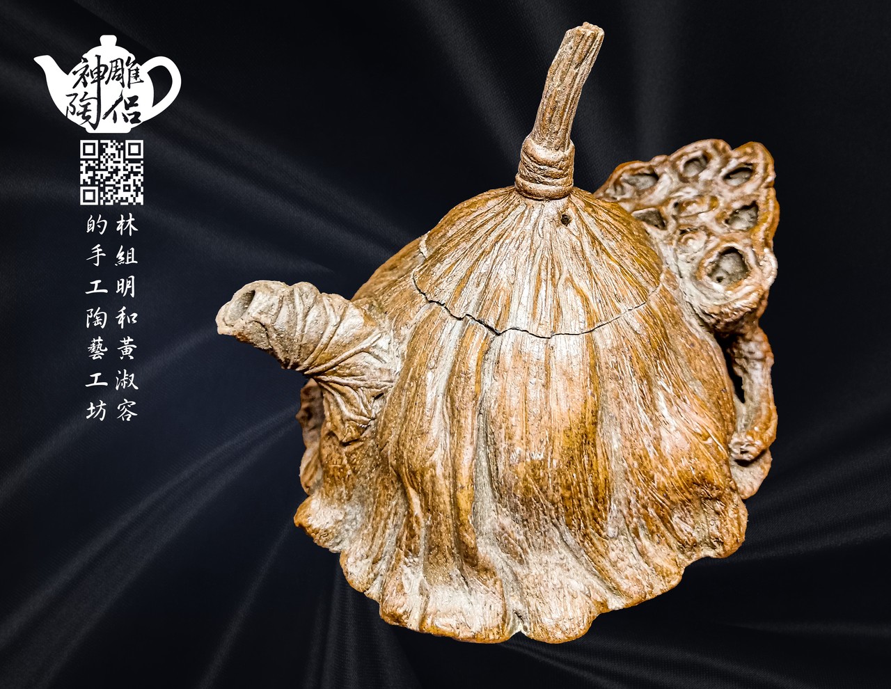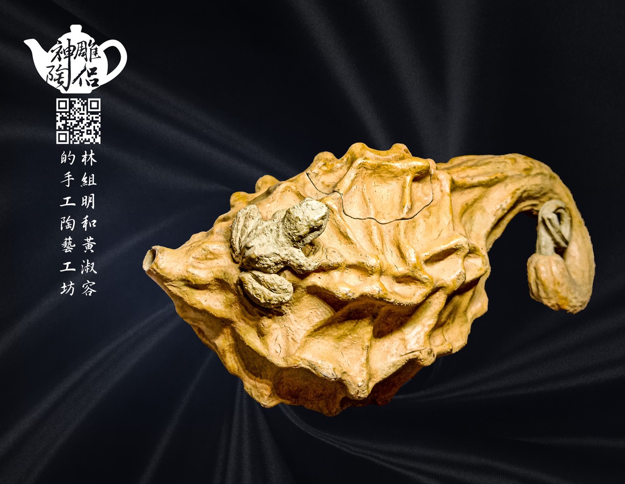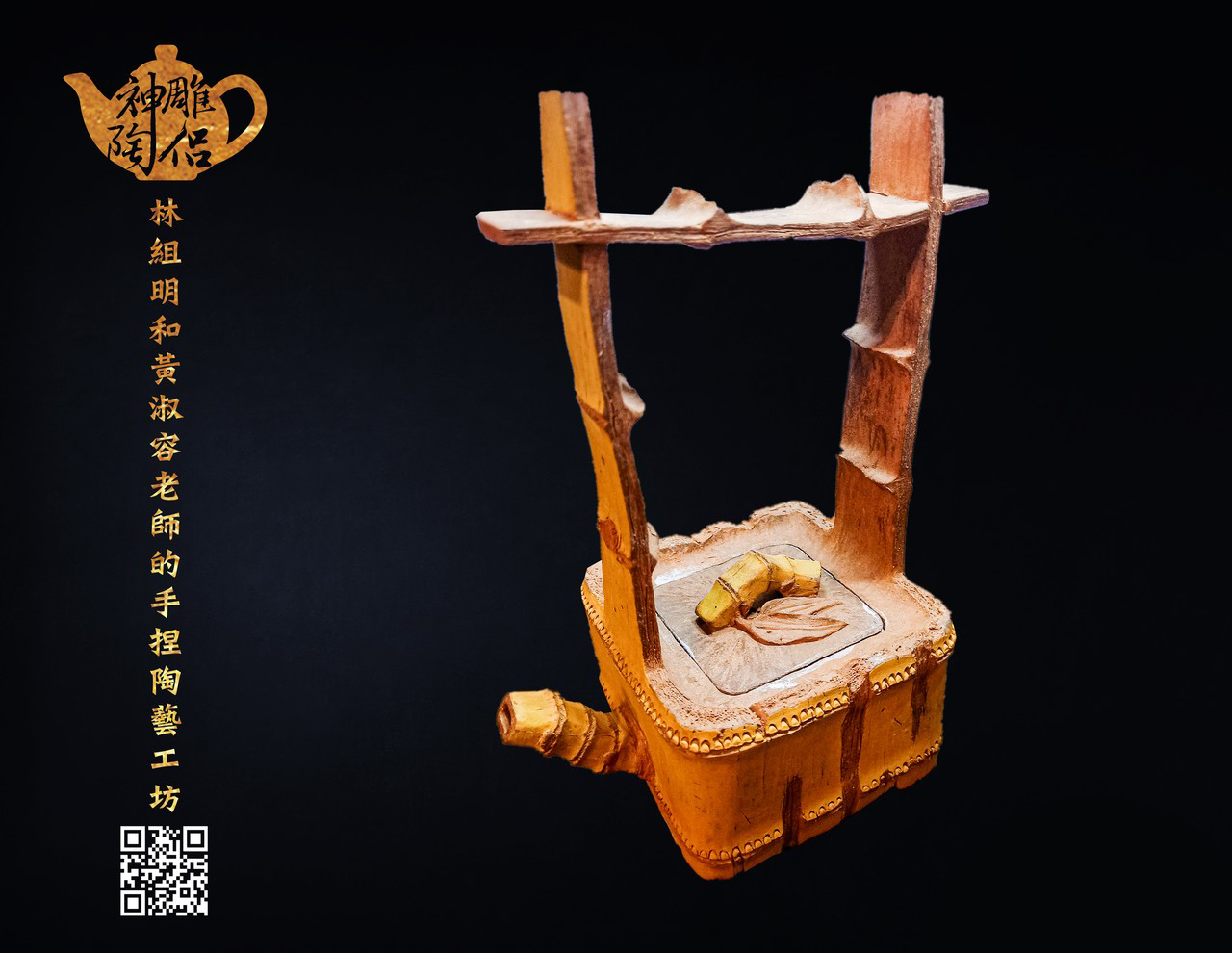 林組明老師的手捏茶壺作品,模仿自然界萬物,維妙維肖,朽木、殘竹、昆蟲鳥魚皆可入形為陶,作品造形精巧、多變化又討喜,每一件陶藝作品皆是花費多時親手製作、獨一無二,是台灣相當具有特色的陶藝作品。