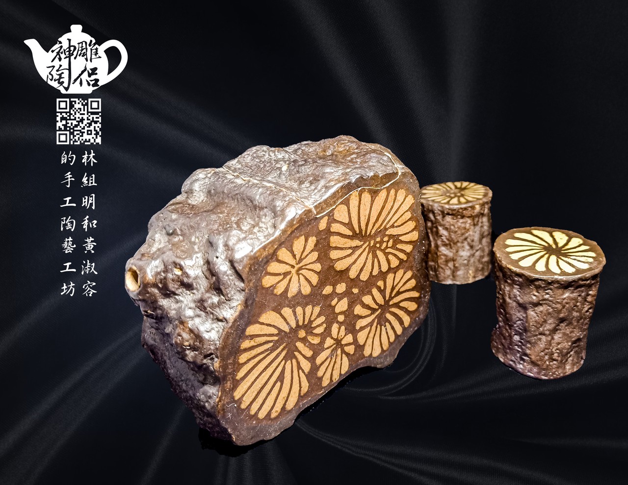 菊花藤壺(含2杯子) (作品編號:019)
