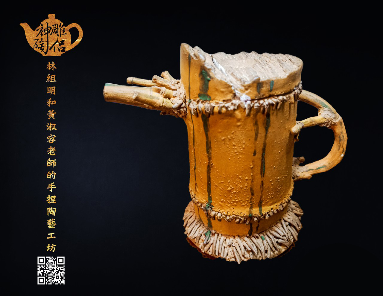林組明老師鑽研手捏陶藝數十載,師承台灣多位陶藝大師,像是林再興大師、姚自來大師、